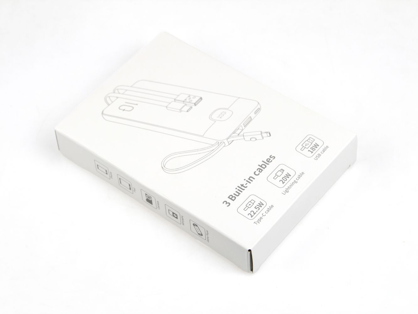 LONDON 10K is a breakthrough in ergonomics – it features built-in output cables (USB-C and Lightning) and a unique, built-in USB-A input cable for recharging the power bank itself. This means the user doesn't need to carry any extra wires at all. This "all-in-one" approach ensures your gadget is always ready to perform, increasing brand exposure.