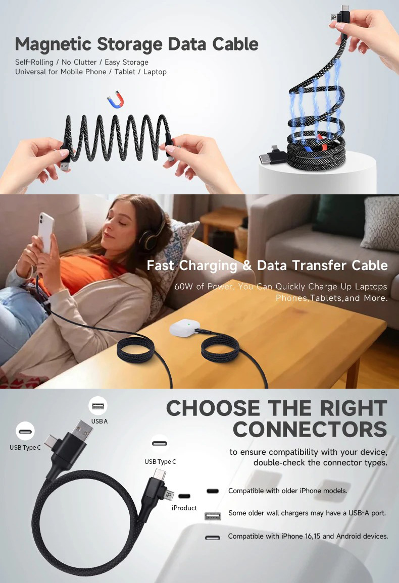 4-in-1 magnetic USB cable 60W VOLT with data transfer and Your logo