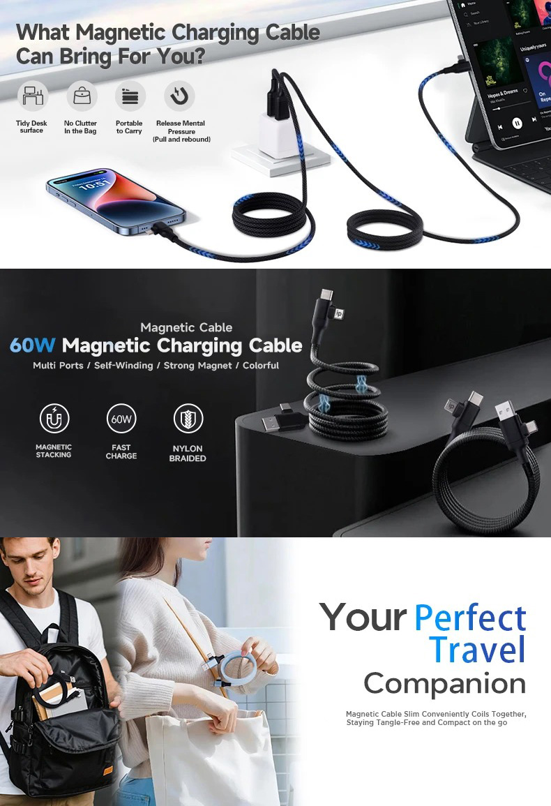 Innovative magnetic 4-in-1 charging cable – offer your clients a clutter-free desk and technological versatility