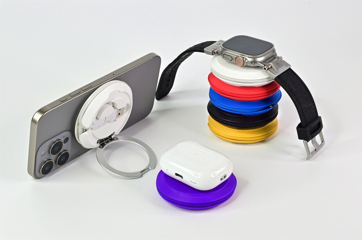 Charge your phone, Apple Watch, and wireless earbuds simultaneously – no more tangled cables or multiple chargers.