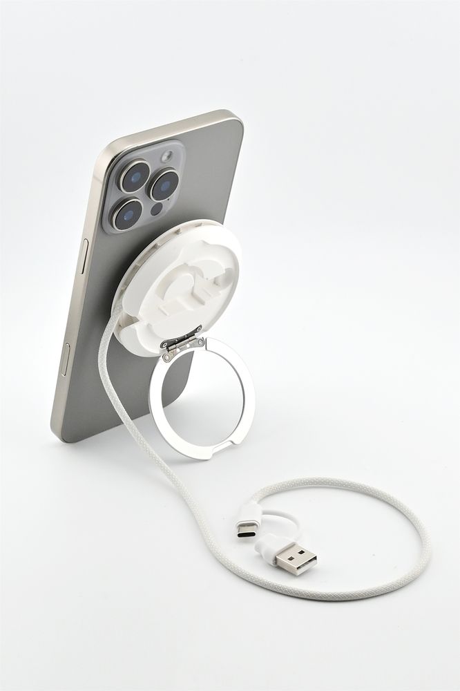 Functions as a 15W wireless charger and an ergonomic phone stand – perfect for video calls, media viewing, and desk work.