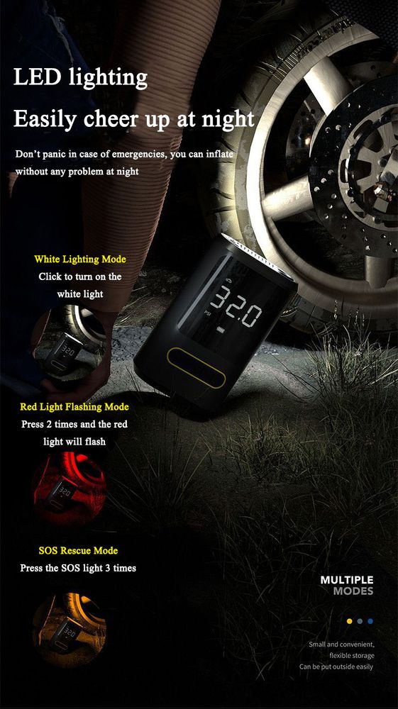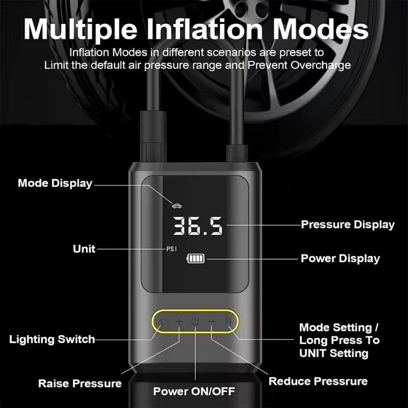 The inflator automatically stops once it reaches the preset pressure, ensuring safety and precision.