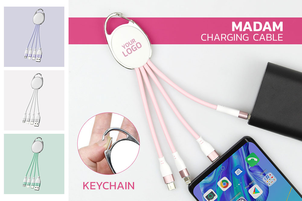 Kabel USB 3w1 brelok z wygodnym karabińczykiem dzięki czemu przczepisz go do plecaka, torebki, kluczy itp. Multikabel umożliwia ładowanie do trzech urządzeń jednocześnie, wykonany został z trwałych i wytrzymałych materiałów.