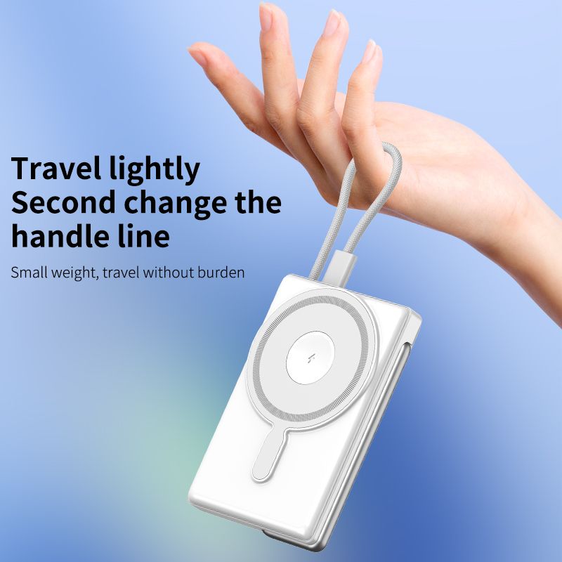 Wbudowany przewód USB-C to klucz do maksymalnej mobilności. Obsługuje on szybkie ładowanie o mocy 22.5W, co pozwala na błyskawiczne uzupełnienie energii w nowoczesnych smartfonach. Co ważne, kabel działa dwukierunkowo, więc służy również do ładowania samego power banku, co czyni go najbardziej ergonomicznym akcesorium w segmencie B2B.
