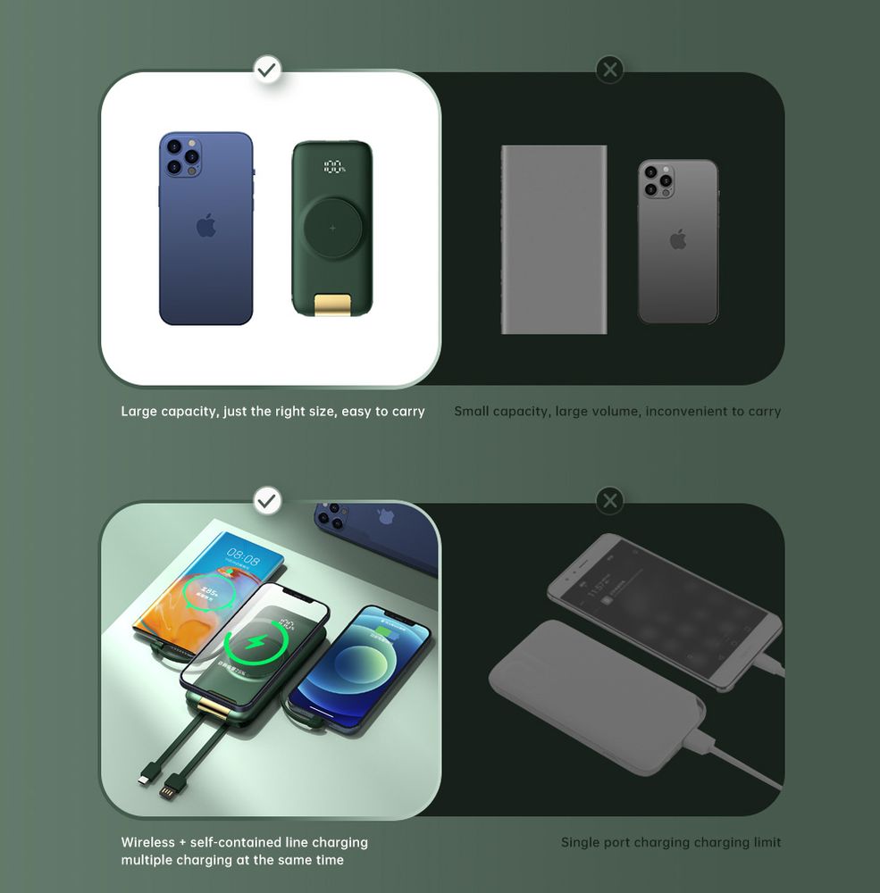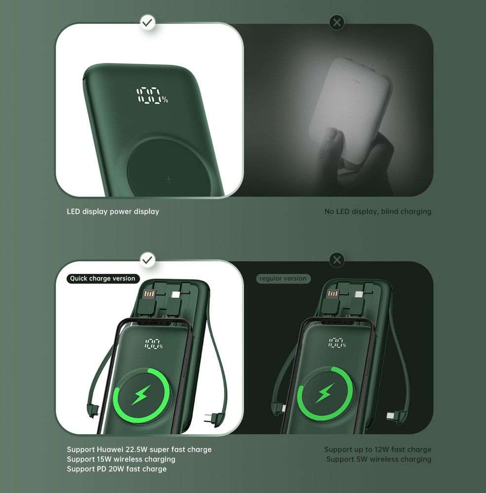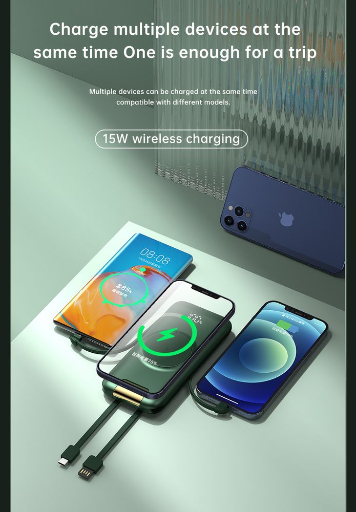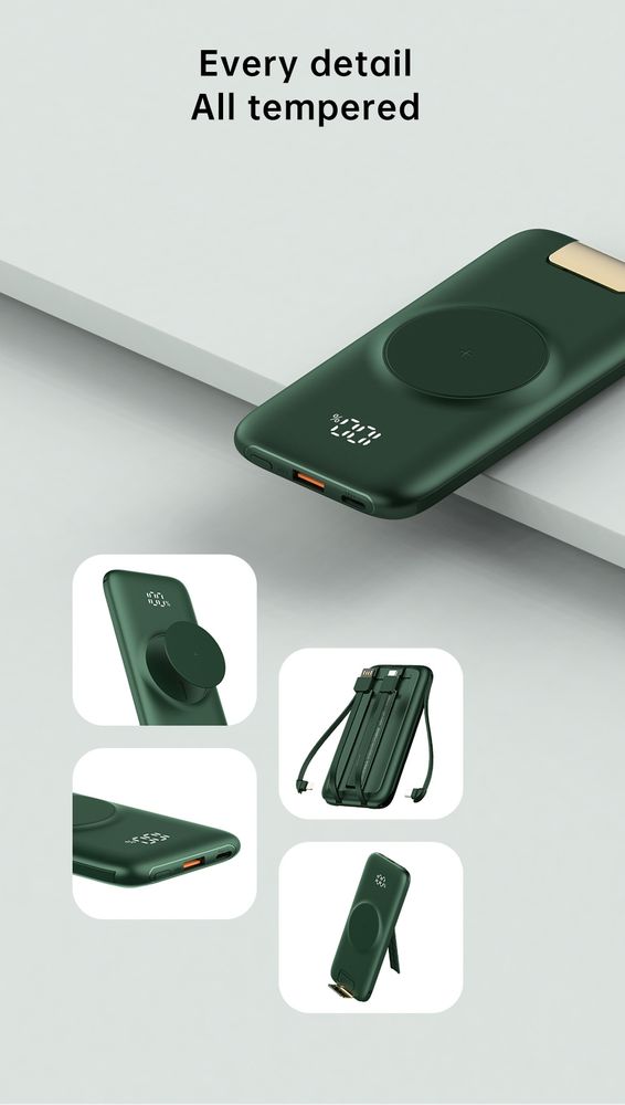 Wbudowane przewody eliminują konieczność noszenia dodatkowych kabli, co sprawia, że power bank jest jeszcze bardziej funkcjonalny i zawsze gotowy do użycia.
