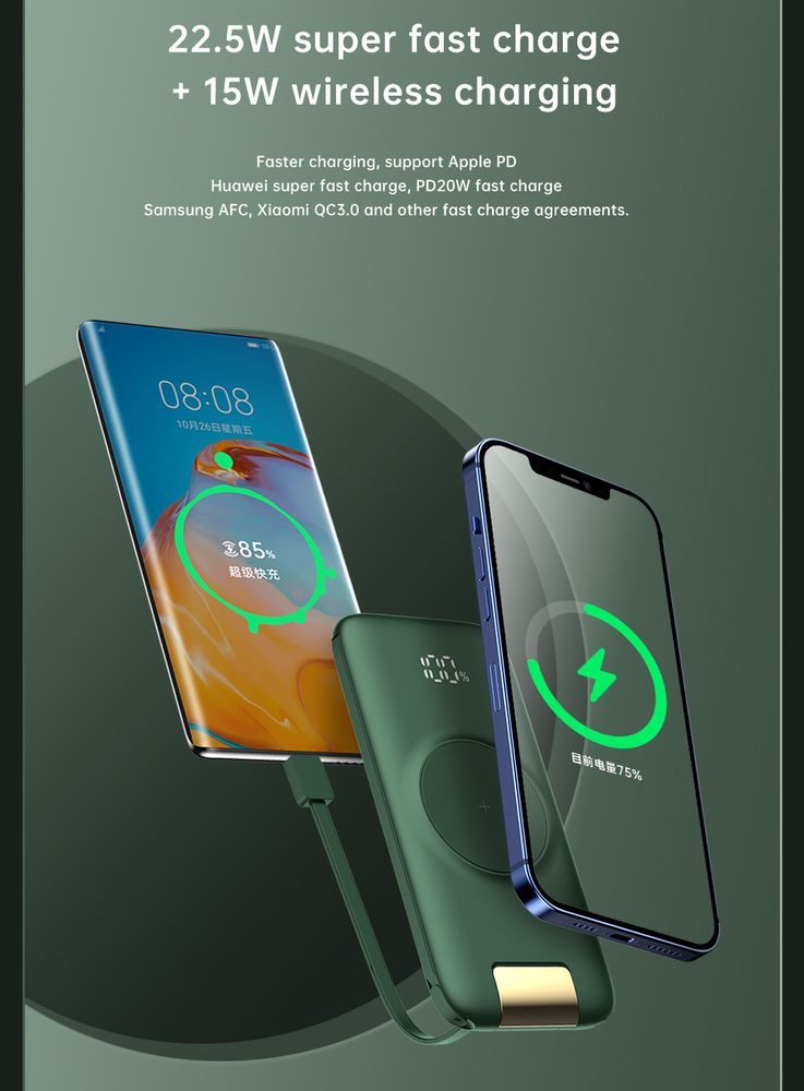 Szybkie ładowanie przewodowe 22.5W i bezprzewodowe 15W