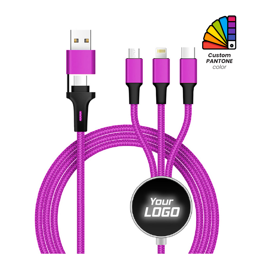 Wprowadź swoje działania promocyjne na wyższy poziom dzięki kablowi ATLANTA, który łączy w sobie nieograniczoną kompatybilność z unikalnym designem. To produkt zaprojektowany dla agencji reklamowych szukających gadżetów "tailor-made" – jako jeden z niewielu modeli na rynku oferuje możliwość produkcji w dowolnym kolorze Pantone (już od 1000 sztuk). Wybierając ten multikabel, dostarczasz swoim kontrahentom prestiżowe narzędzie pracy, które dzięki podświetlanemu logo sprawia, że Twoja marka staje się widoczna przy każdym użyciu telefonu czy laptopa.