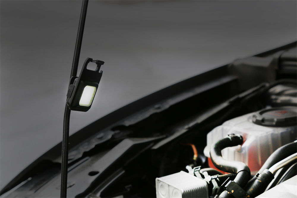 Dzięki magnesowi możesz przymocować latarkę do metalowych powierzchni, a karabińczyk umożliwia szybkie przypięcie do plecaka, kluczy czy paska.