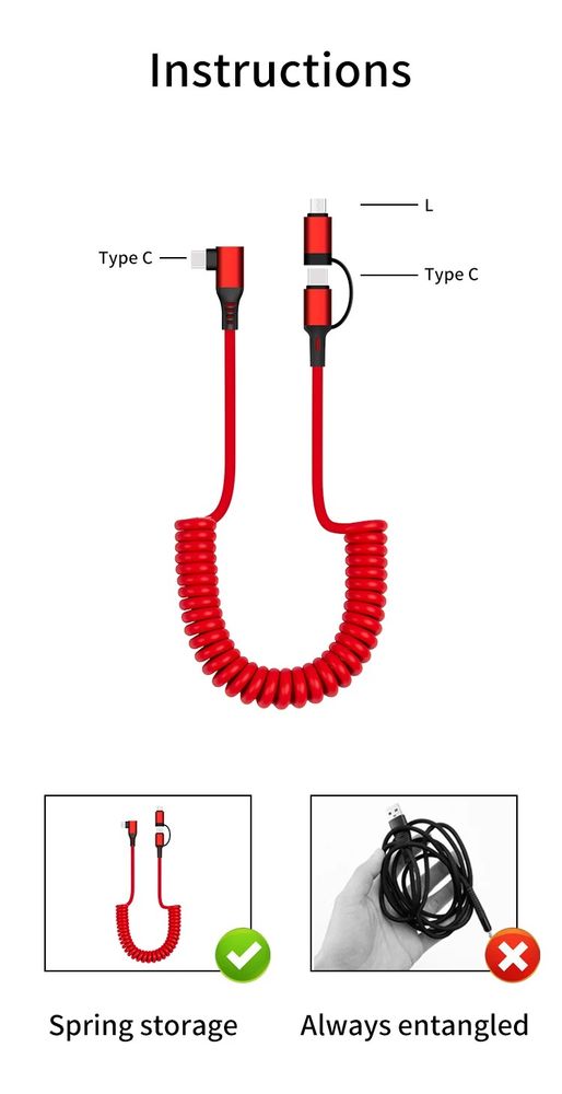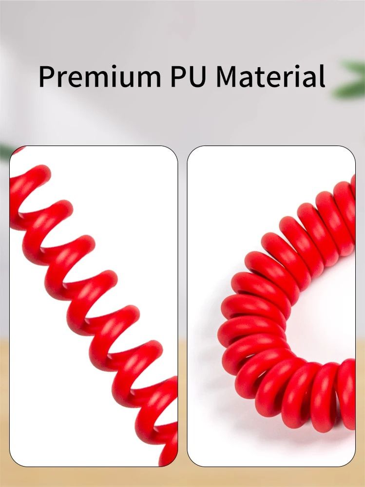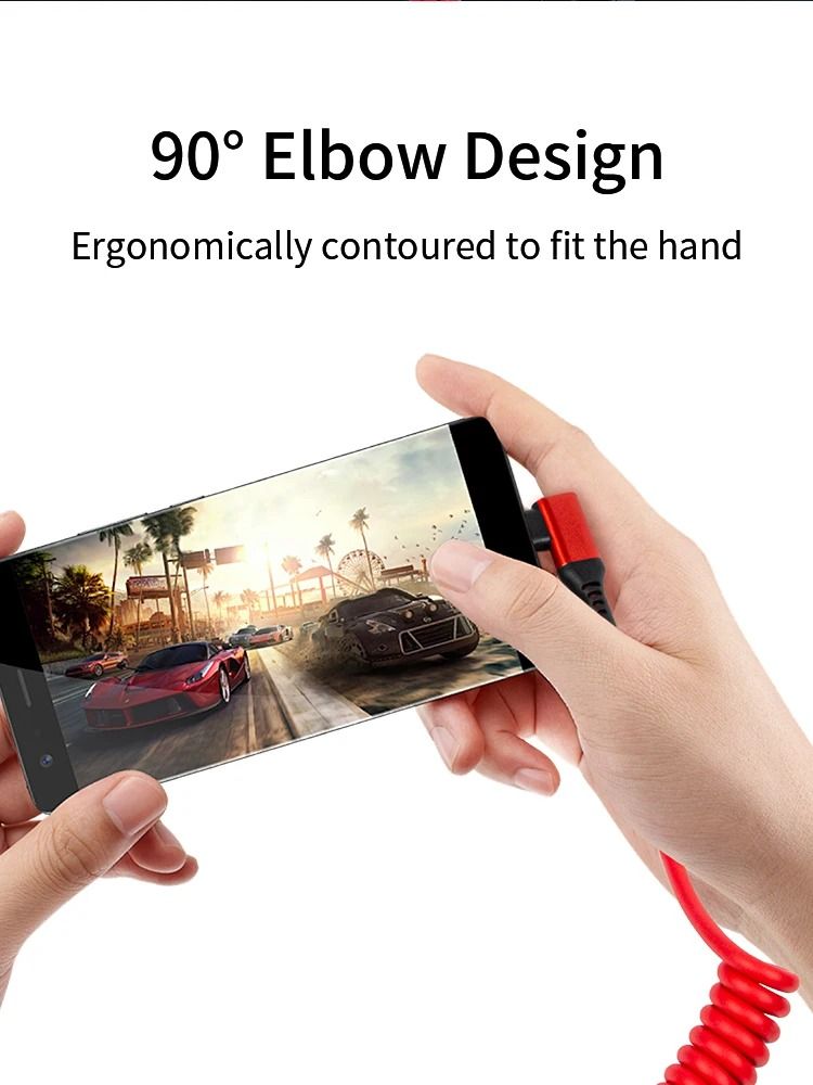 Zastosowanie wytrzymałego materiału PU o strukturze sprężyny pozwala na swobodne rozciąganie kabla do 150 cm, przy jednoczesnym zachowaniu minimalnej długości w stanie spoczynku. To kluczowa cecha dla osób ceniących estetykę i porządek na biurku lub w konsoli centralnej samochodu – kabel nigdy się nie plącze i zawsze wygląda profesjonalnie.