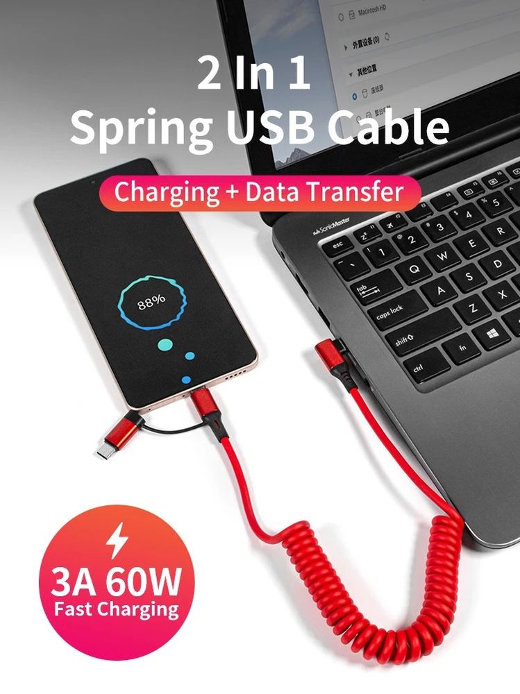 Innowacyjny kabel sprężynowy 2w1 – prestiżowy gadżet reklamowy do nowoczesnego biura i samochodu