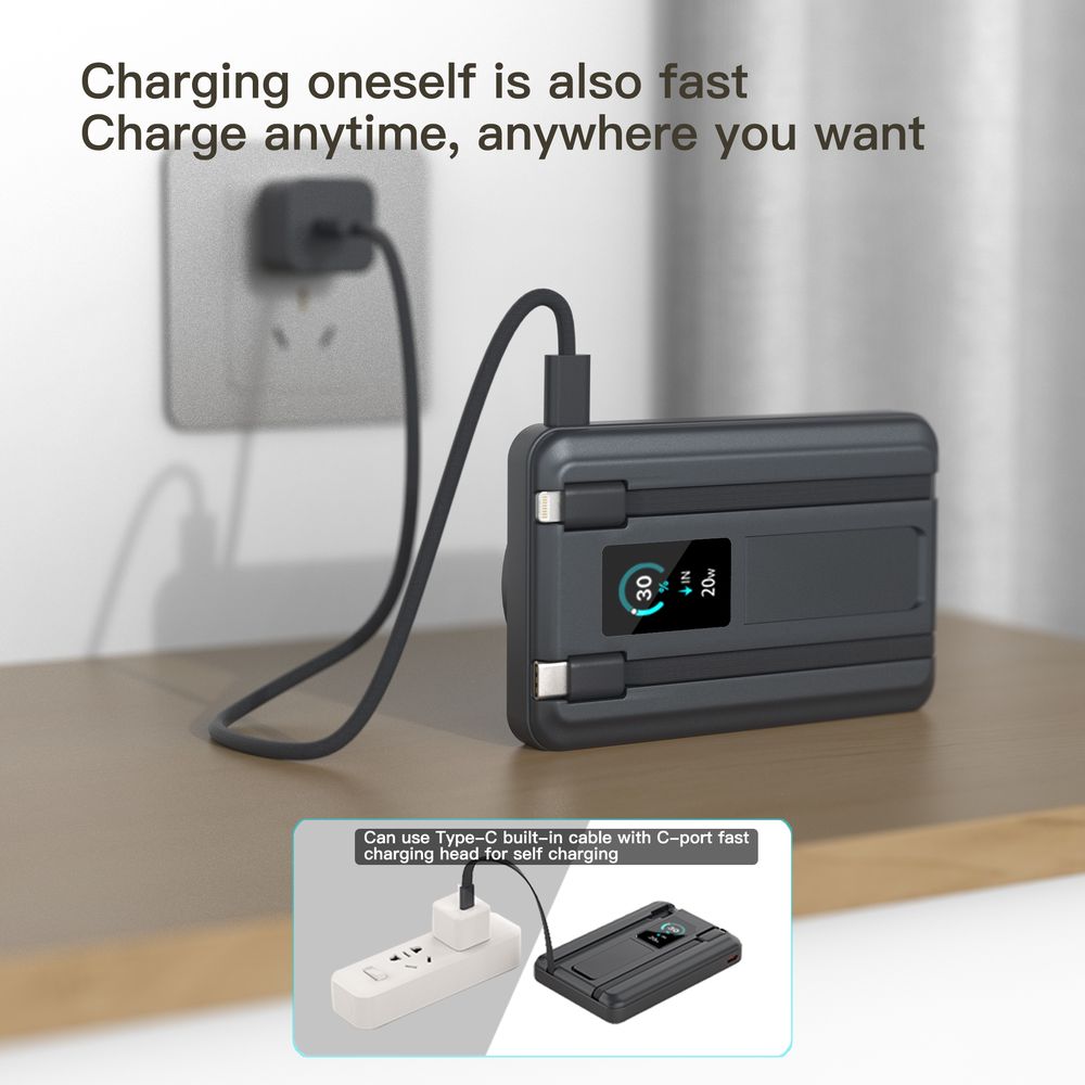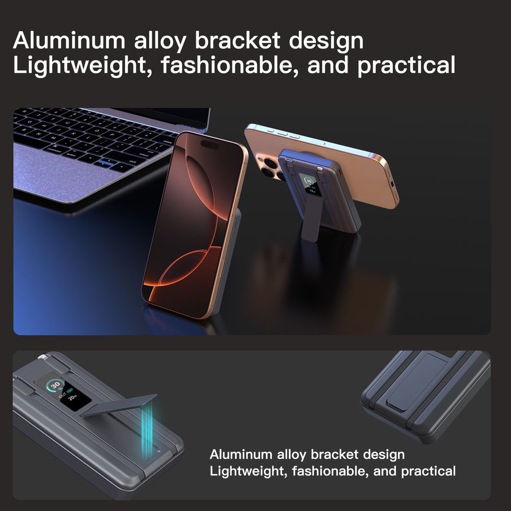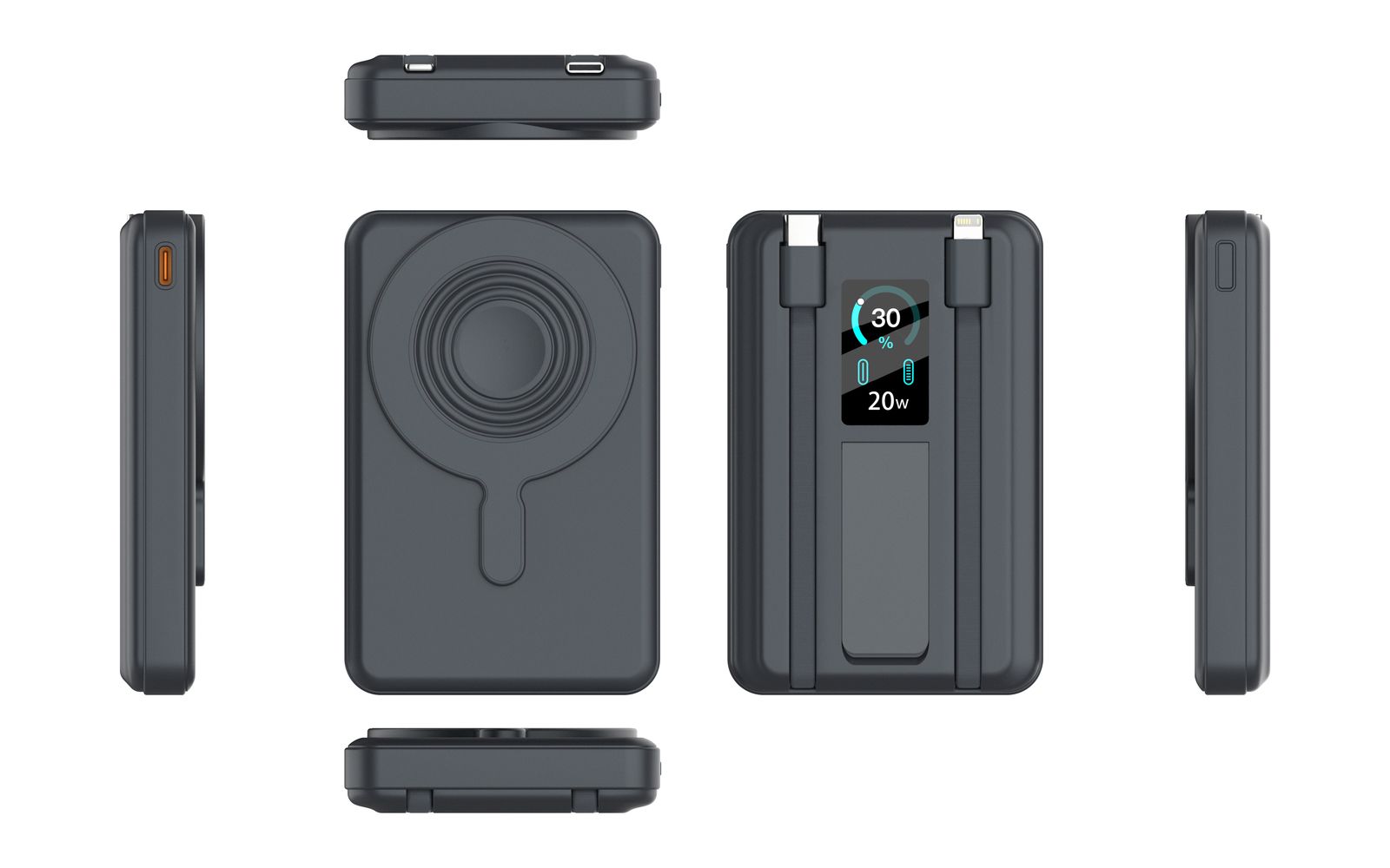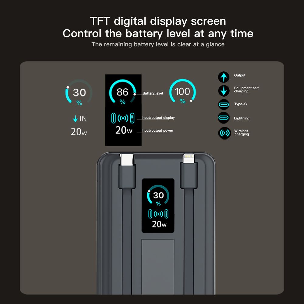 Magnetyczny Power Bank z kablami i wyświetlaczem cyfrowym ORION 10000mAh