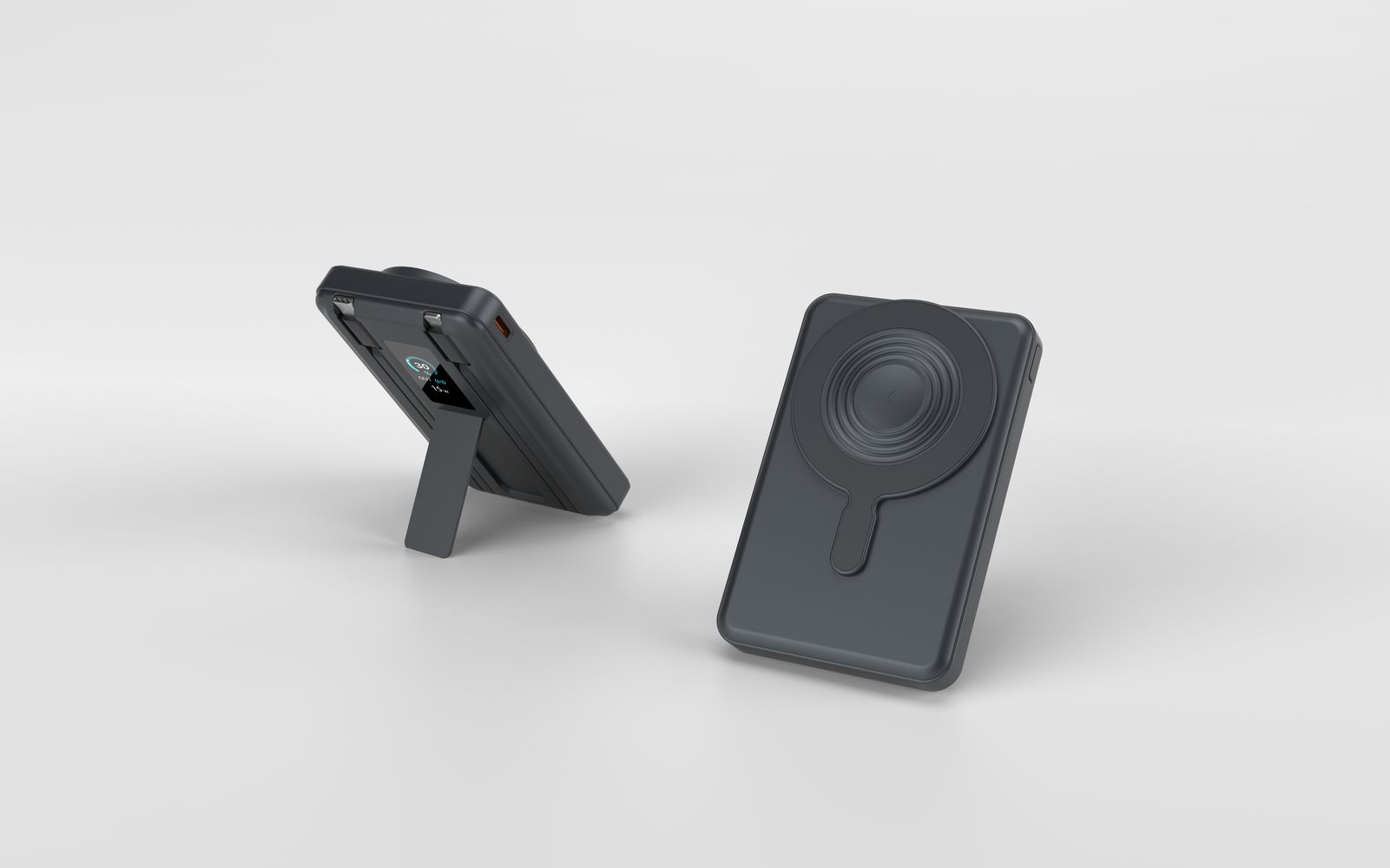 Mimo ogromnej funkcjonalności, ORION zachowuje smukły profil, co czyni go jednym z najcieńszych power banków typu multi-cable. Aluminiowa, odchylana nóżka pozwala na wygodne korzystanie z telefonu w trybie "Standby", zamieniając smartfon w elegancki zegar biurkowy podczas pracy. To połączenie sprawia, że gadżet jest chętnie eksponowany na biurkach, zapewniając stałą widoczność logotypu Twojego klienta.