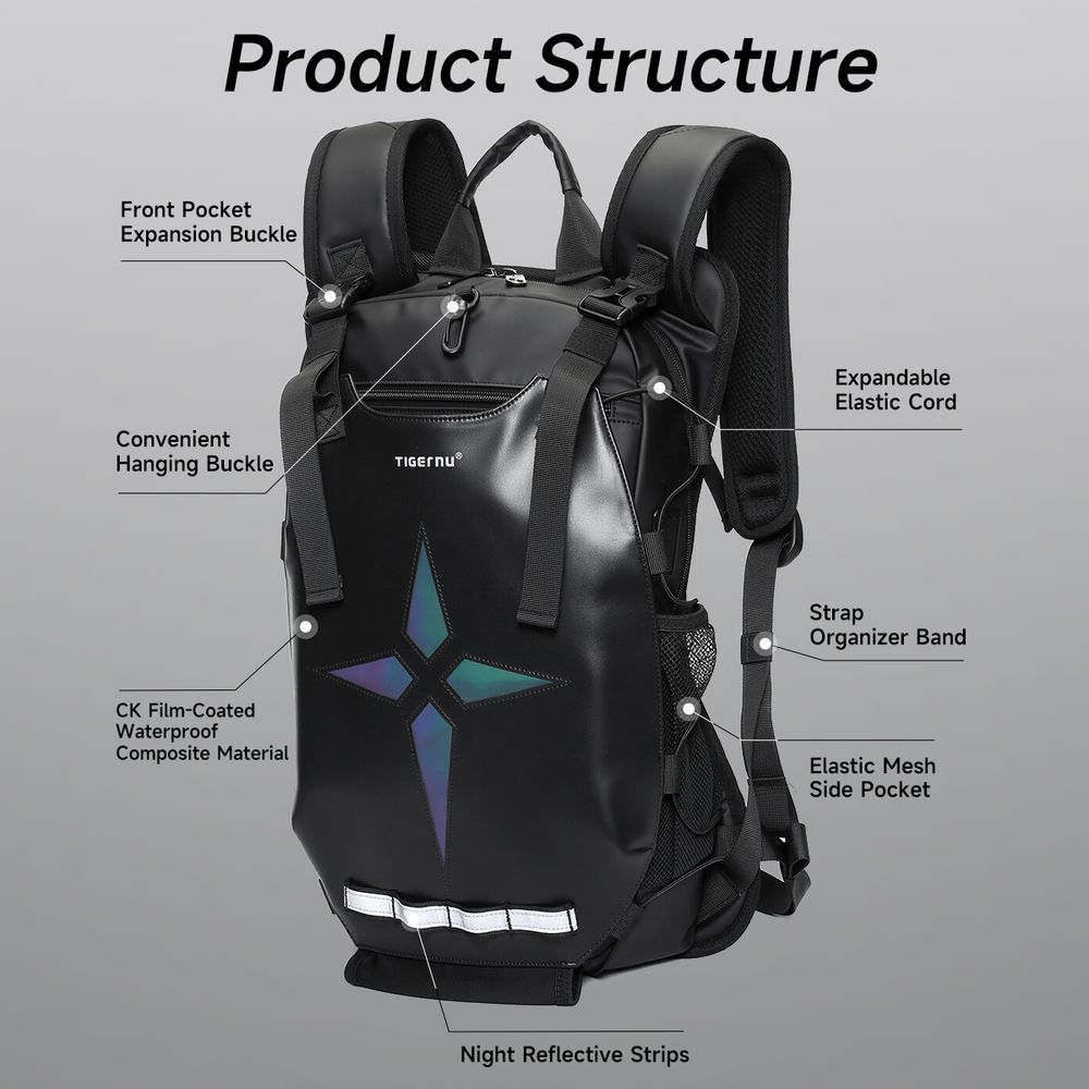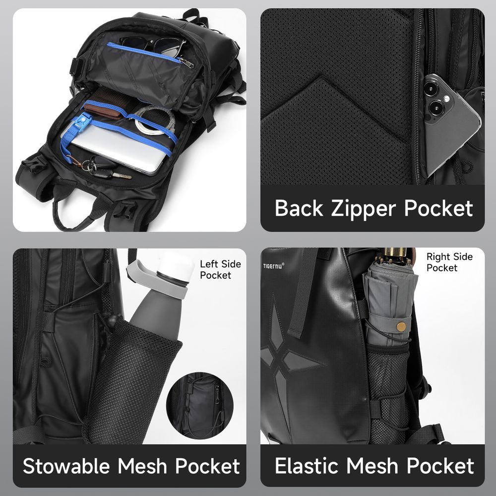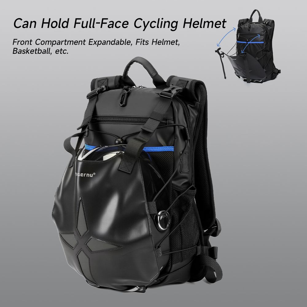 Największym wyróżnikiem modelu T-B9888 jest rozszerzalna komora frontowa, która pozwala na stabilne przewożenie kasku (nawet typu Full-Face) na zewnątrz plecaka. To rozwiązanie eliminuje problem noszenia kasku w ręku po zejściu z motocykla czy hulajnogi. Dodatkowe linki bungee pozwalają na błyskawiczne przytroczenie mokrej odzieży, co czyni ten plecak bezkonkurencyjnym wyborem dla aktywnych użytkowników miejskich.