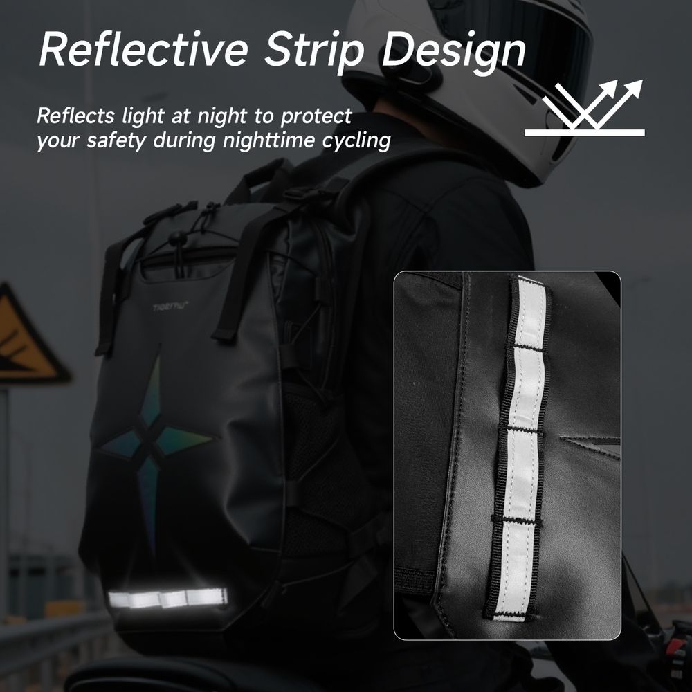 Bezpieczeństwo pasywne zostało tu wyniesione na nowy poziom. Plecak posiada strategicznie rozmieszczone elementy odblaskowe oraz centralny holograficzny element w kształcie gwiazdy, który mieni się pod różnymi kątami. Gwarantuje to doskonałą widoczność po zmroku, co jest koronnym argumentem sprzedażowym w kampaniach promujących bezpieczną jazdę i odpowiedzialność społeczną (CSR).