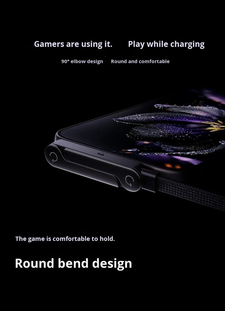 Wtyczka USB-C zaprojektowana pod kątem prostym idealnie przylega do krawędzi urządzenia. Takie rozwiązanie nie tylko drastycznie zwiększa żywotność przewodu (zapobiegając jego zaginaniu), ale także pozwala na komfortowe korzystanie z telefonu lub tabletu w trybie poziomym, co docenią miłośnicy mobilnego gamingu i profesjonaliści.